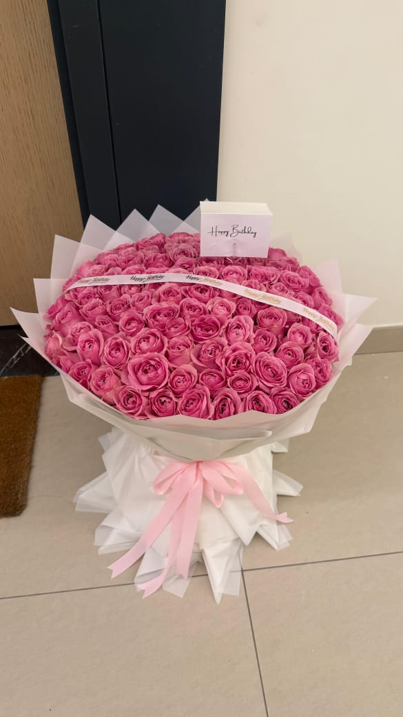 Make every moment unforgettable with our Luxury Pink Rose Grand Bouquet, a breathtaking arrangement of premium handpicked pink roses. Designed in a voluminous dome style, this bouquet is elegantly wrapped in soft pastel pink paper and finished with a delicate ribbon for a sophisticated touch.